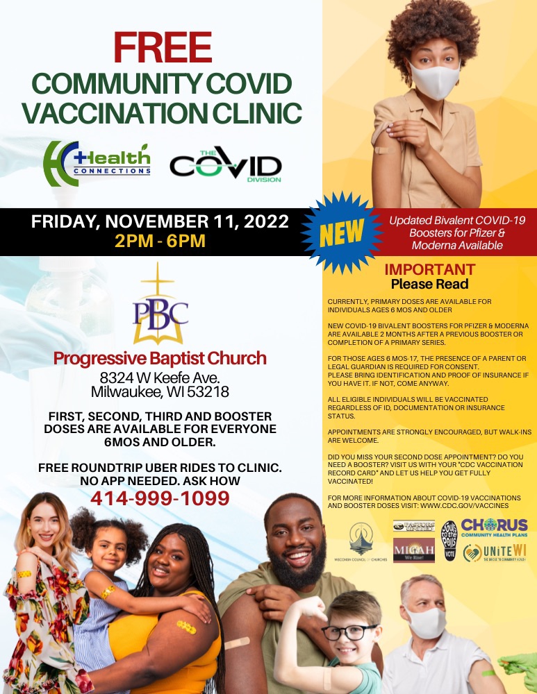 We will have our next vaccine clinic on November 11 from 2 until 6 PM at Progressive we are, as always, encouraging all to participate including those who still need to get their children vaccinated. Contact the office for any questions or concerns.