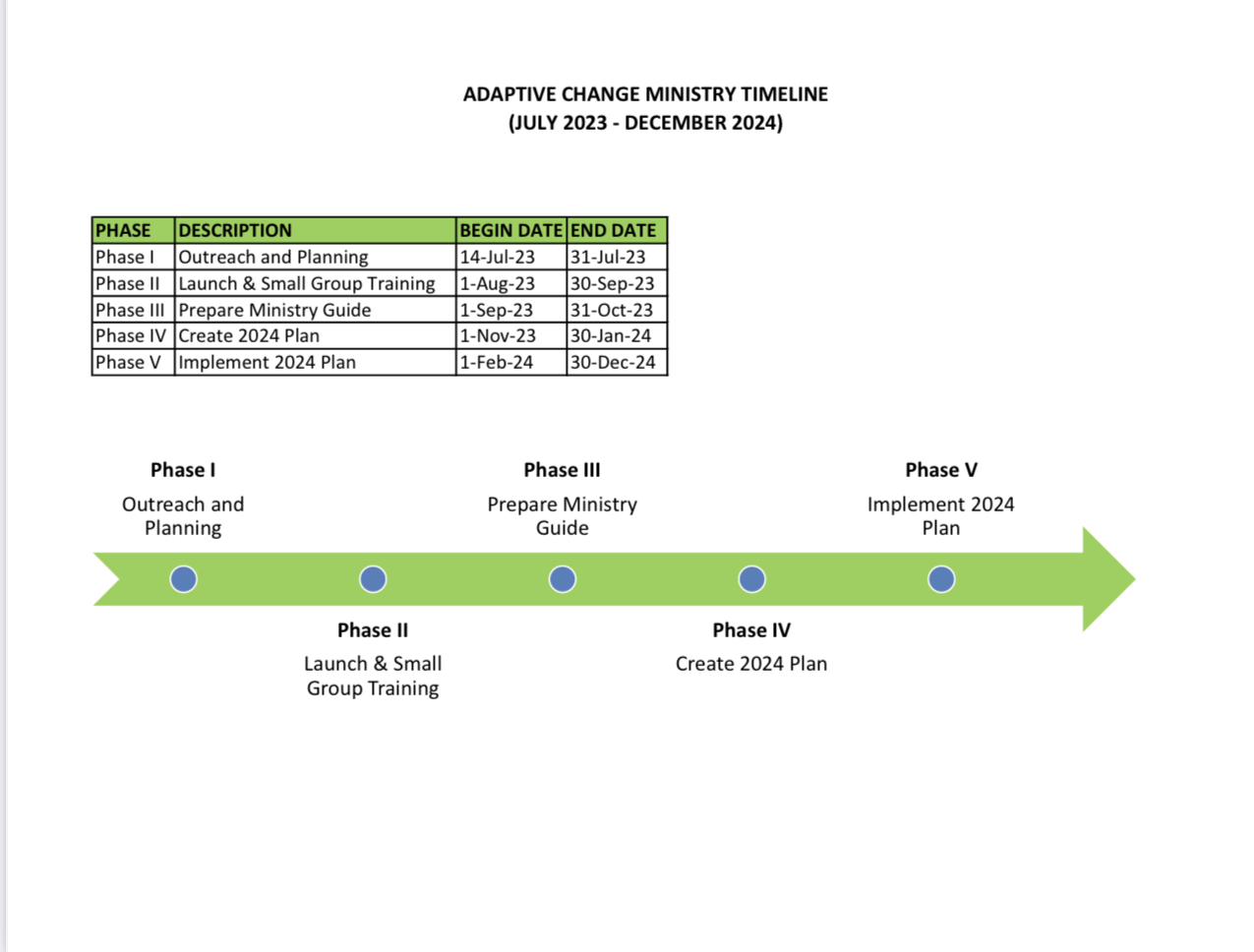 We had an excellent meeting after church with about 50 participants learning about our Adapting to Change process also filling out ministry interest forms to assist on organizing us for the future. A diagram of our work timeline is attached and we will send out the ministry interest from electronically and also with a hard copy.
