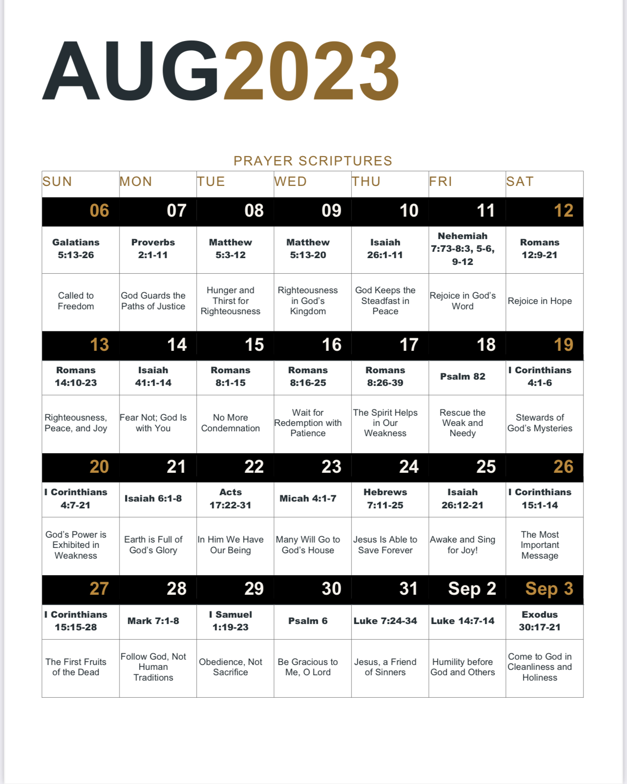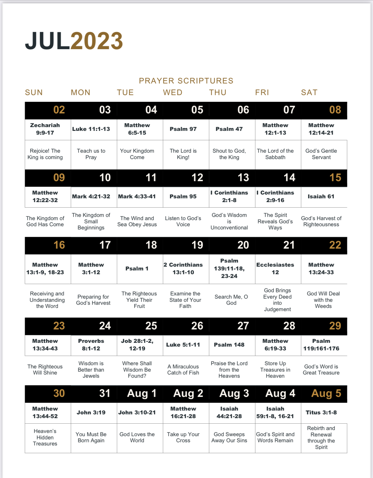 Attached are several items including our July and August prayer verses and song from our morning prayer line.